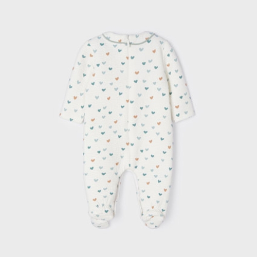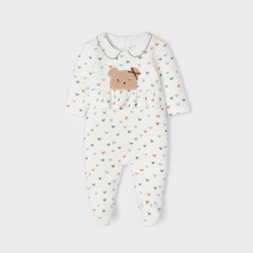 Macacão de manga comprida para recém nascido. Aperta com fecho. Neste modelo os tamanhos maiores (dos 6-9 até aos 18 meses) não levam pés, para maior conforto no uso e facilitar a mobilidade do bebé.