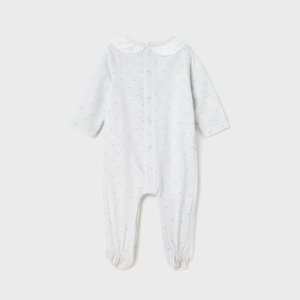 Peça ECOFRIENDS contém algodão sustentável. Pijama de manga comprida para recém nascido. Aperta com botões de pressão na parte de trás para facilitar a colocação da peça. Aperta com botões de pressão entrepernas para facilitar a colocação da peça. Este artigo vem numa caixa da coleção Newborn, ideal para ser oferecer em ocasiões especiais. Os tamanhos maiores deste modelo (12 e 18 meses) têm uma sola antiderrapante.