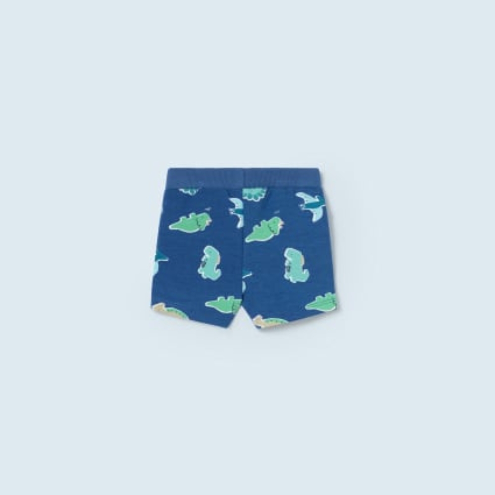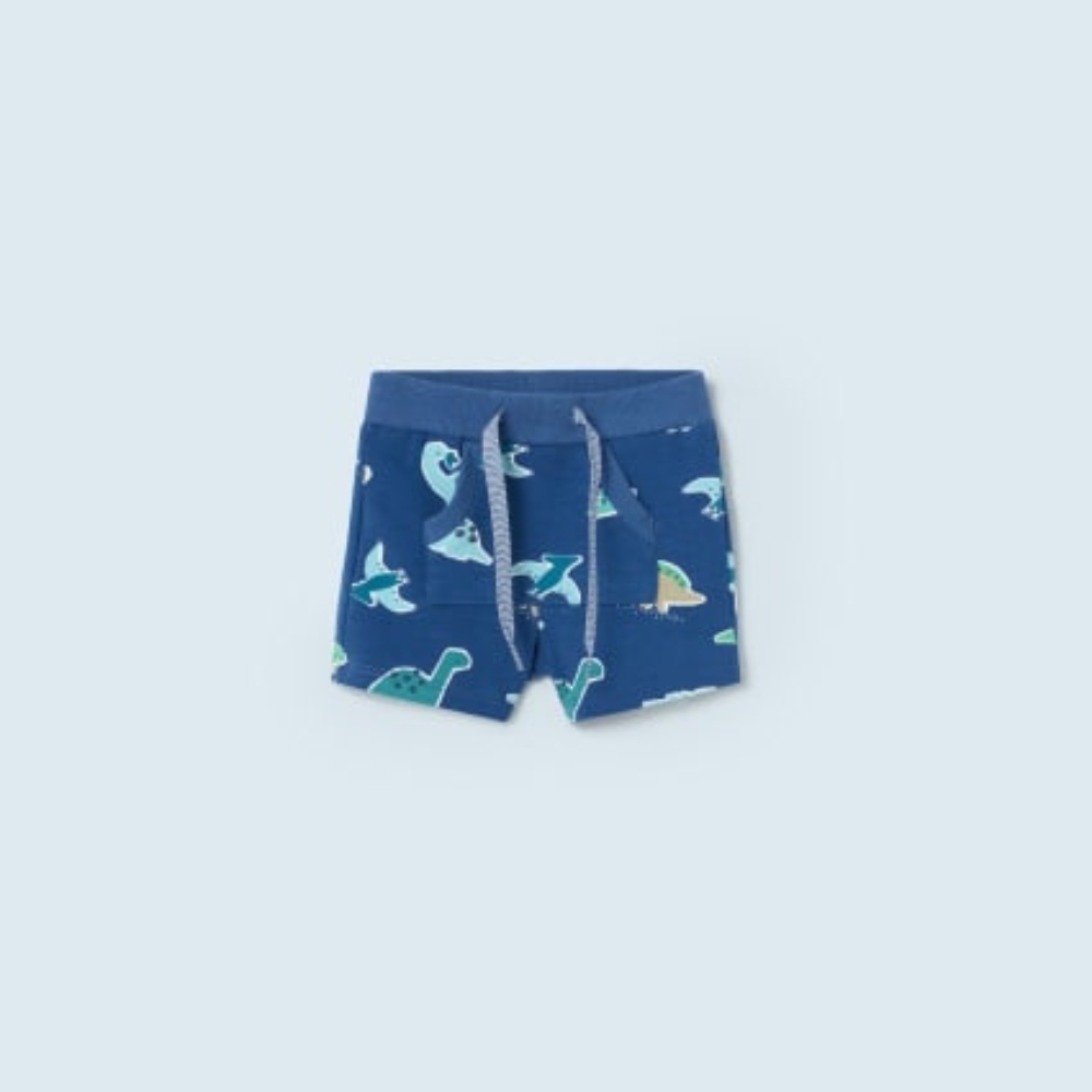Peça ECOFRIENDS contém algodão sustentável. Calças tipo bermudas para recém nascido. Elástico na cintura para um melhor ajuste. Bolso funcional na frente. Design estampado