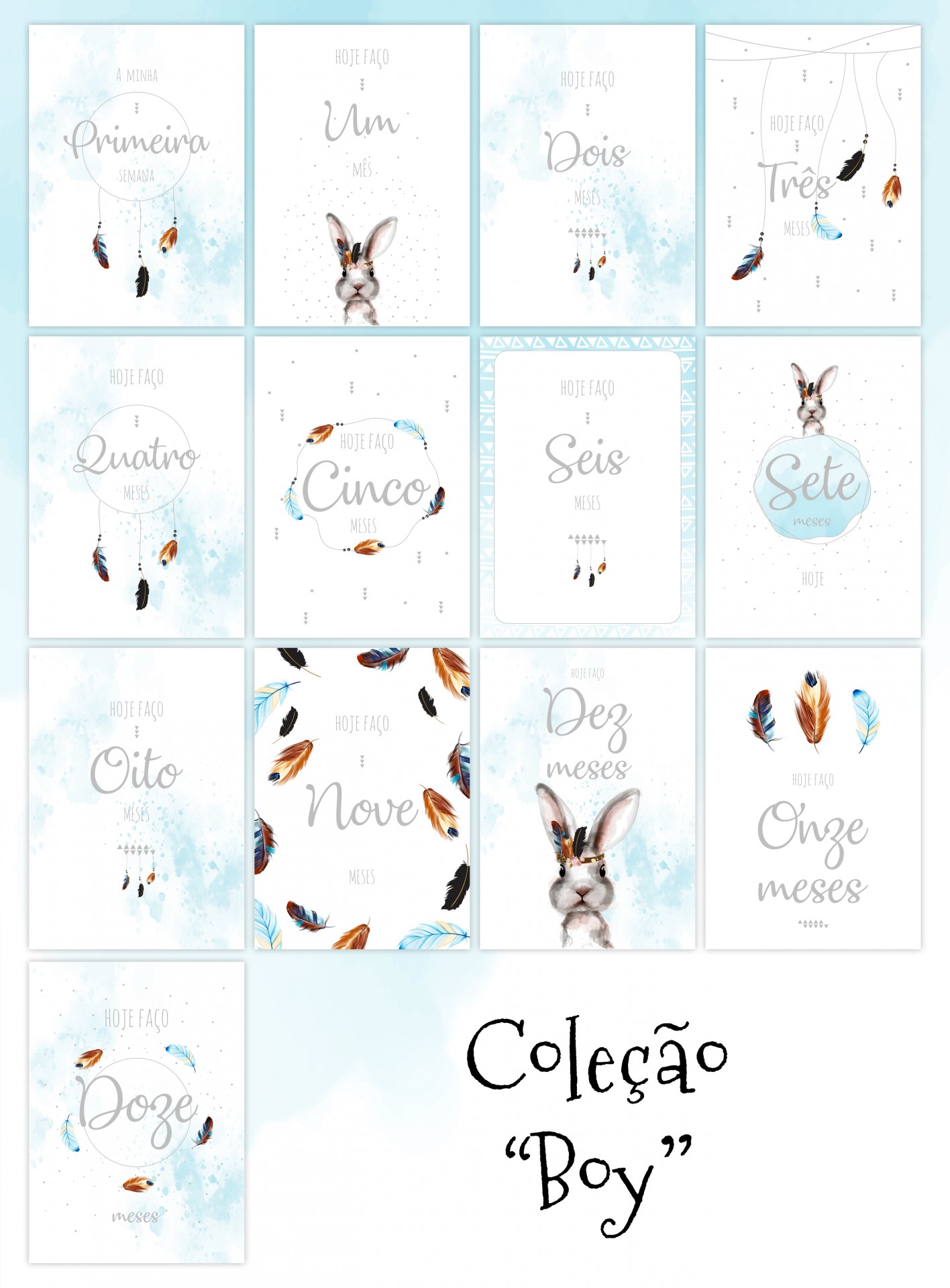12 cartões correspondentes ao 1° Ano do seu bebé (1 por cada mês).