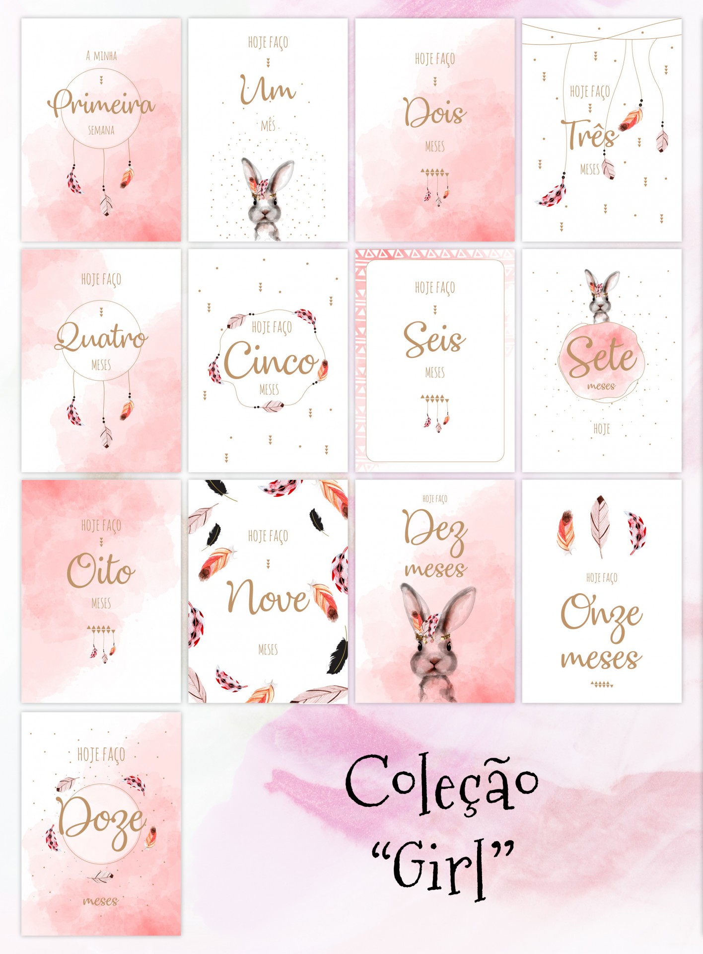 - 12 cartões correspondentes ao 1° Ano do seu bebé (1 por cada mês).
