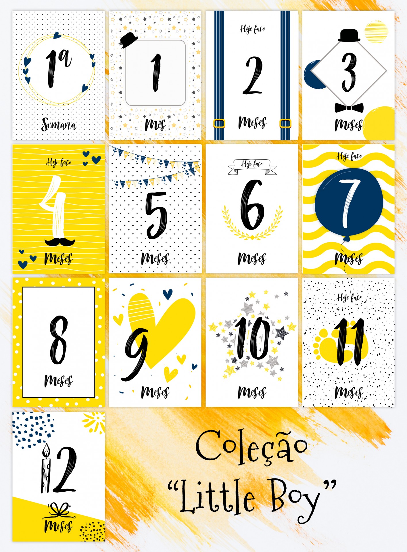 - 12 cartões correspondentes ao 1° Ano do seu bebé (1 por cada mês).