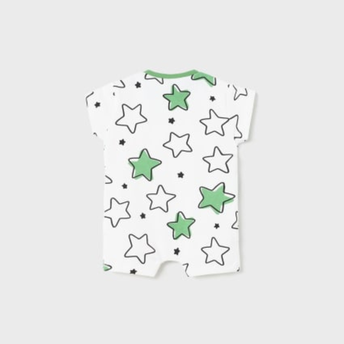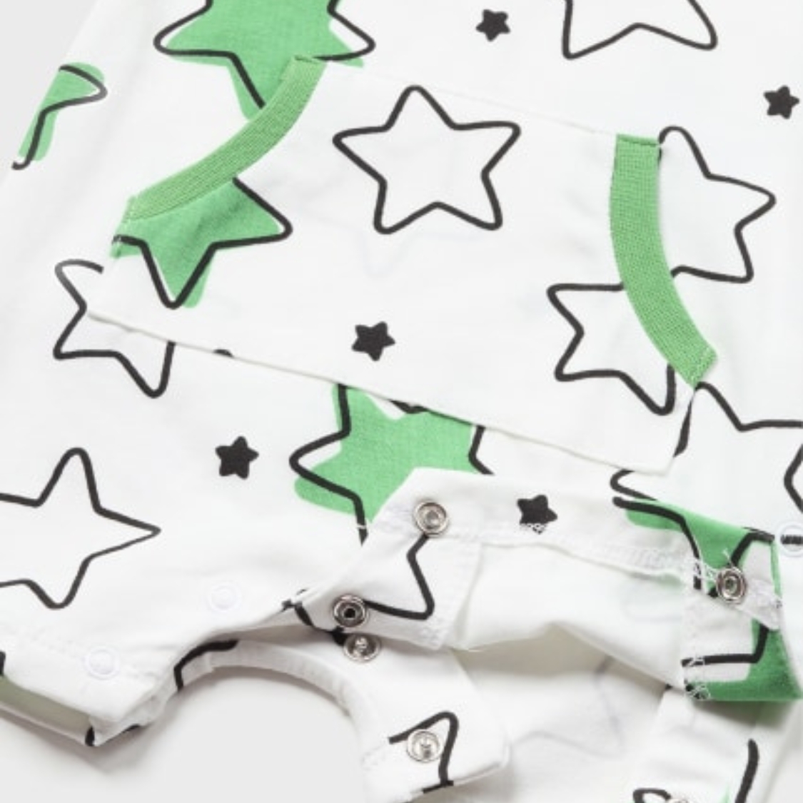 Pijama de manga curta para recém nascido. Aperta de lado com botões de pressão. Aperta com botões de pressão entrepernas para facilitar a colocação da peça. Este artigo vem numa caixa da coleção Newborn, ideal para ser oferecer em ocasiões especiais.