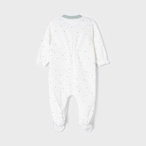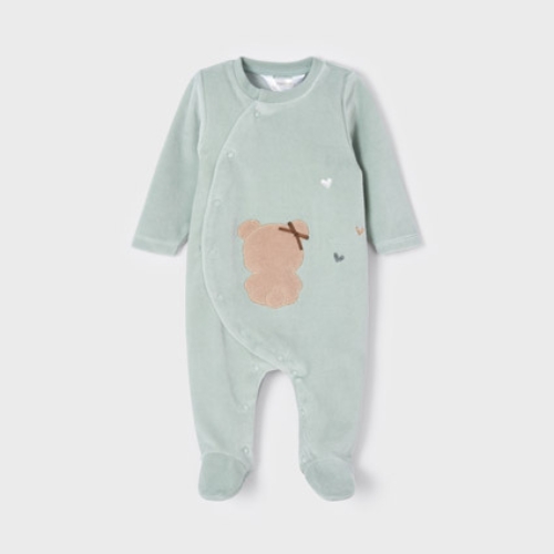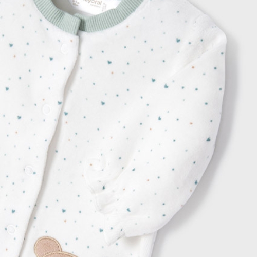 Pijama manga comprida para recém nascido. Aperta de lado com botões de pressão. Aperta com botões de pressão entrepernas para facilitar a colocação da peça. Confecionado em tecido de veludo elegante e clássico. Os tamanhos maiores deste modelo (12 e 18 meses) têm uma sola antiderrapante.
