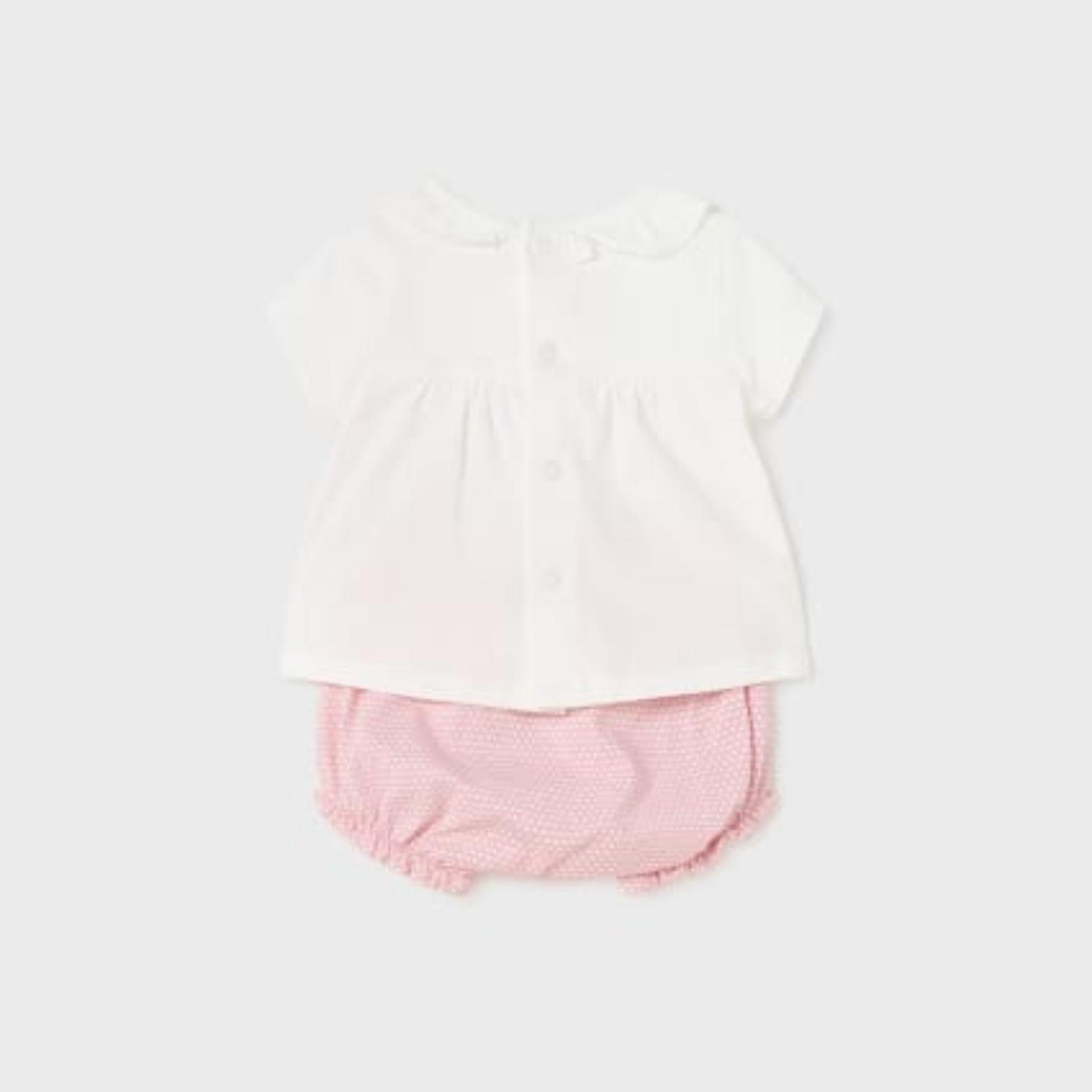 Peça ECOFRIENDS contém algodão sustentável. Pack de quatro peças para recém nascido formado por dois conjuntos de camisola de manga curta e calção.