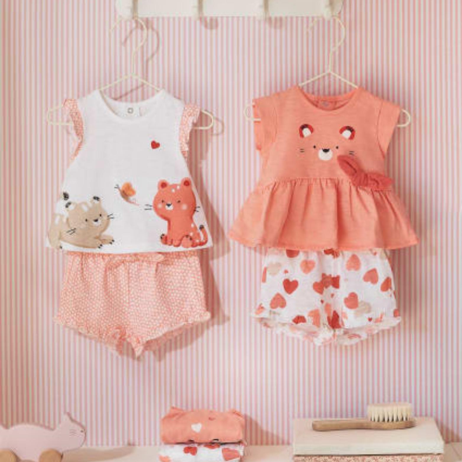 Home Vestuário Conjunto 4 peças de algodão sustentável Conjunto 4 peças de algodão sustentável SKU: Art. 23-01610-061 Tamanho 1-2m 2-4m 4-6m 6-9m 21,50 € 43,00 € Desconto de %. IVA incluído. SUPERSALDOS Desconto imediato de 21,50 € (50%) neste produto. Válido de 27 de Dezembro de 2025 às 00:00 até 28 de Fevereiro de 2026 às 00:00. Comprar Contactar Adicionar à wishlist Peça ECOFRIENDS contém algodão sustentável. Pack de quatro peças para recém nascido formado por dois conjuntos de camisola de manga curta e calção. Camisola de manga curta para recém nascido. Aperta com botões de pressão na parte de trás para facilitar a colocação da peça. Calção tipo cuequinha exclusivos da nossa coleção para recém nascido. Elástico na cintura para um melhor ajuste. Composição: Camiseta manga curta: 100% Algodão Short: 100% Algodão Marca MAYORAL NEWBORN Tags meninavestuariocalçõest-shirtprimavera/verão Origem Fabricado em Espanha Envios Grátis acima dos 75€* Partilhar