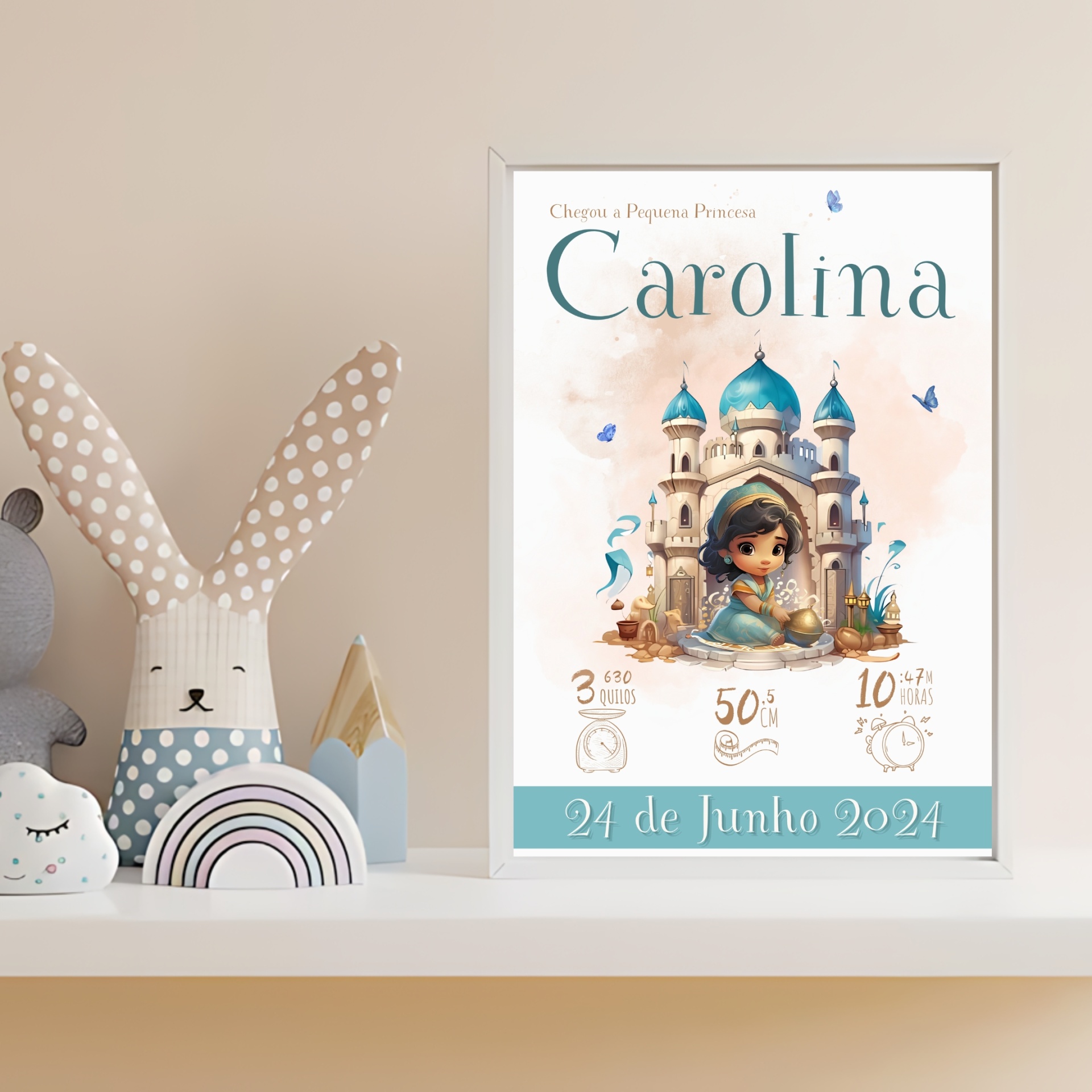 Apenas selecione a opção "Personalizar" (custo de 2,5€), caso pretende um Design Diferente. Caso contrário, a personalização com os dados do seu bebé, encontra-se incluída no preço acima indicado.