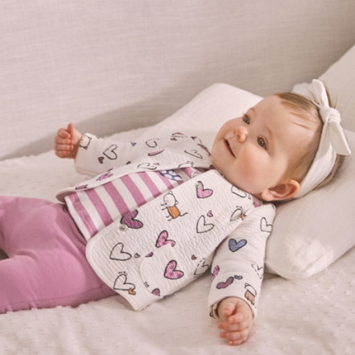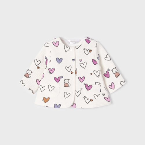 Casaco de manga comprida para recém nascido. Aperta com botões de pressão na parte da frente. Bolsos funcionais na frente.