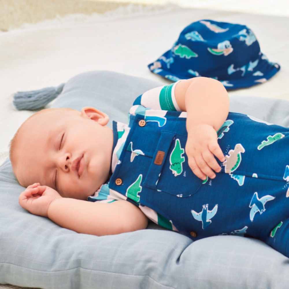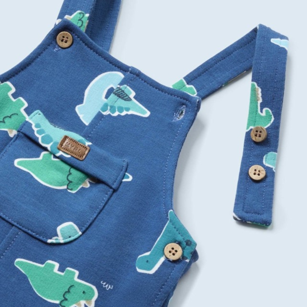 Original jardineira para recém nascido. Aperta com botões de pressão entrepernas para facilitar a colocação da peça. Detalhe com bainha. Elementos decorativos: detalhes pesponteados