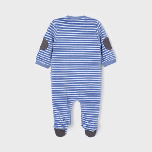 Pijama manga comprida para recém nascido. Aperta de lado com botões de pressão. Aperta com botões de pressão entrepernas para facilitar a colocação da peça. Motivo de riscas. Os tamanhos maiores deste modelo (12 e 18 meses) têm uma sola antiderrapante.