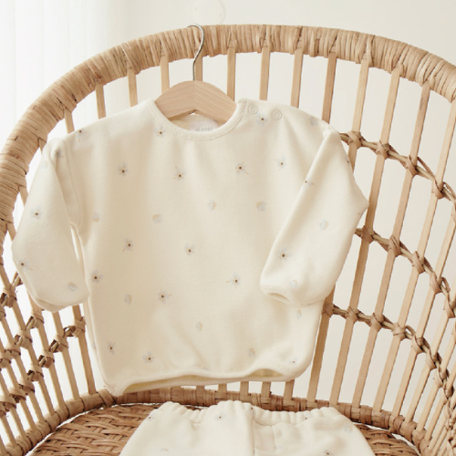 Sweatshirt com decote redondo e manga comprida. Fecho com botão no ombro. Acabamento em nervuras. Feito com o nosso tecido certificado 100% algodão biológico.