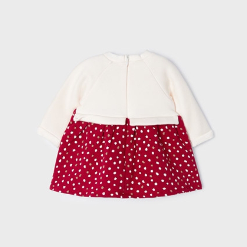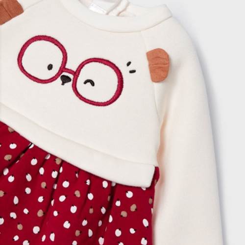 Vestido de manga comprida para recém nascido. Aperta com botões de pressão na parte de trás para facilitar a colocação da peça. Cómodo tecido de felpa confortável e suave ao tato.
